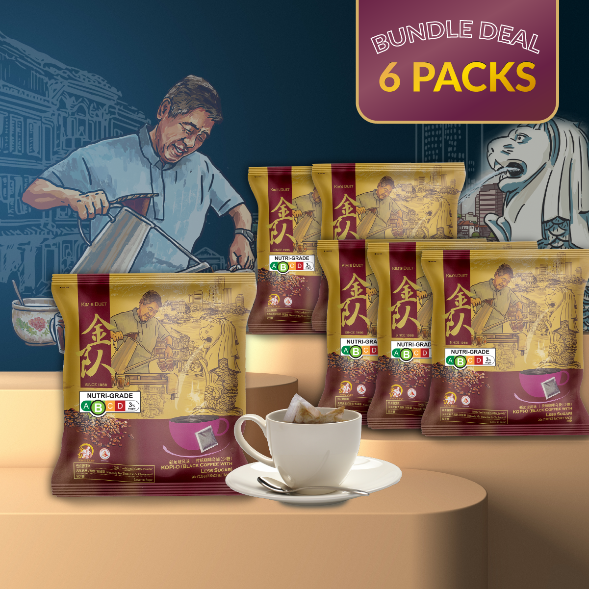 Savour the aromatic and bold flavour of Singapore Traditional Coffee with Kim’s Duet Kopi-O. Each sachet is lightly sweetened, perfectly balancing the bittersweet profile of traditionally roasted robusta beans for a smooth and satisfying cup.