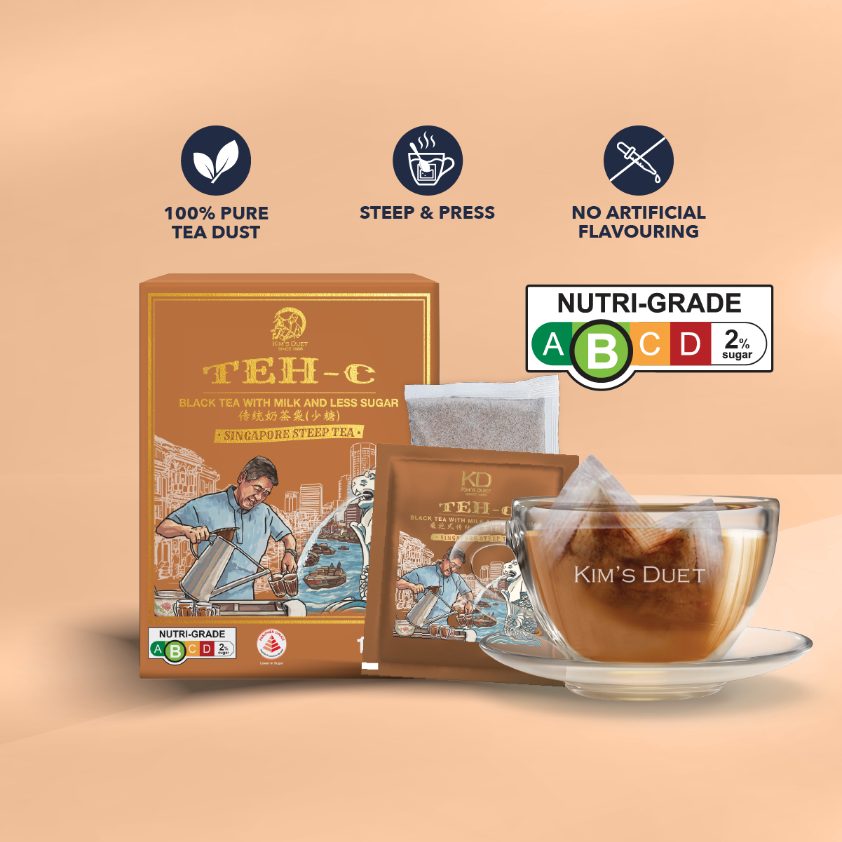 Our tea dust is sourced from the best-producing regions and we blend the tea at our own roastery to ensure optimal freshness. Kim's Duet tea bags contain 100% tea dust and offer an authentic cup of traditional tea in the most convenient way.