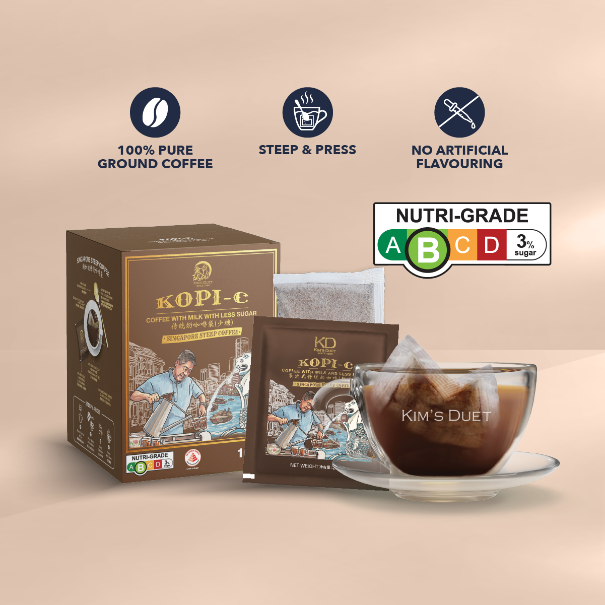 Our coffee is produced in small batches to ensure freshness in every pack, the roasted beans are ground, packed and sealed within a day to lock in the aroma. Kim's Duet coffee bags offer authentic traditional coffee in a convenient way – maximizing the taste whilst minimizing the hassle.